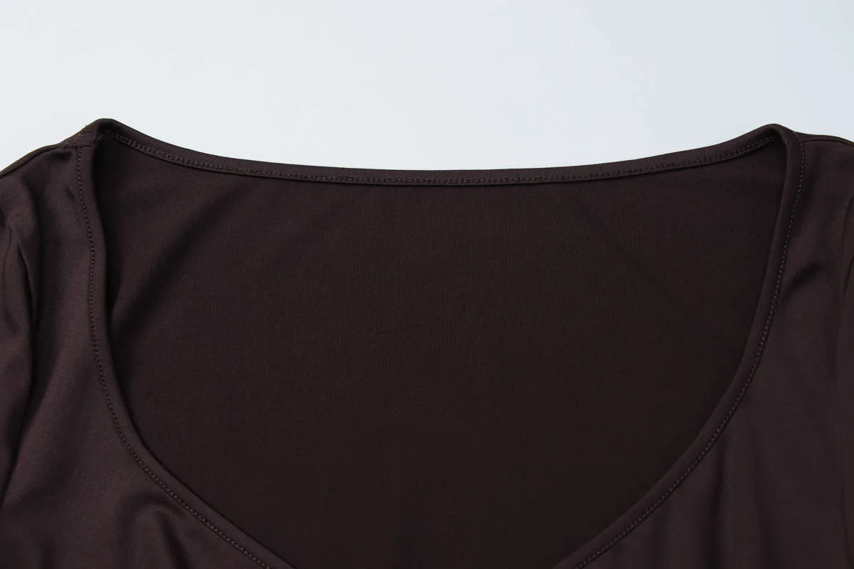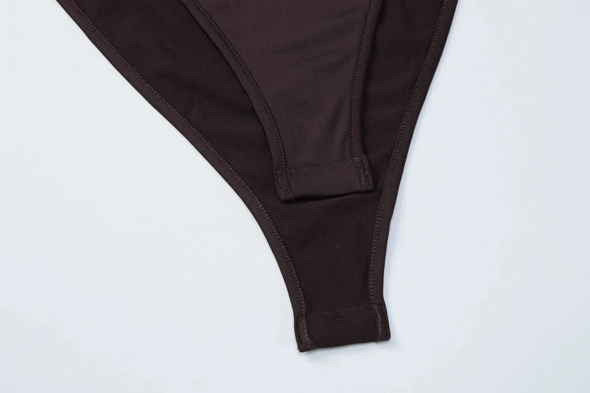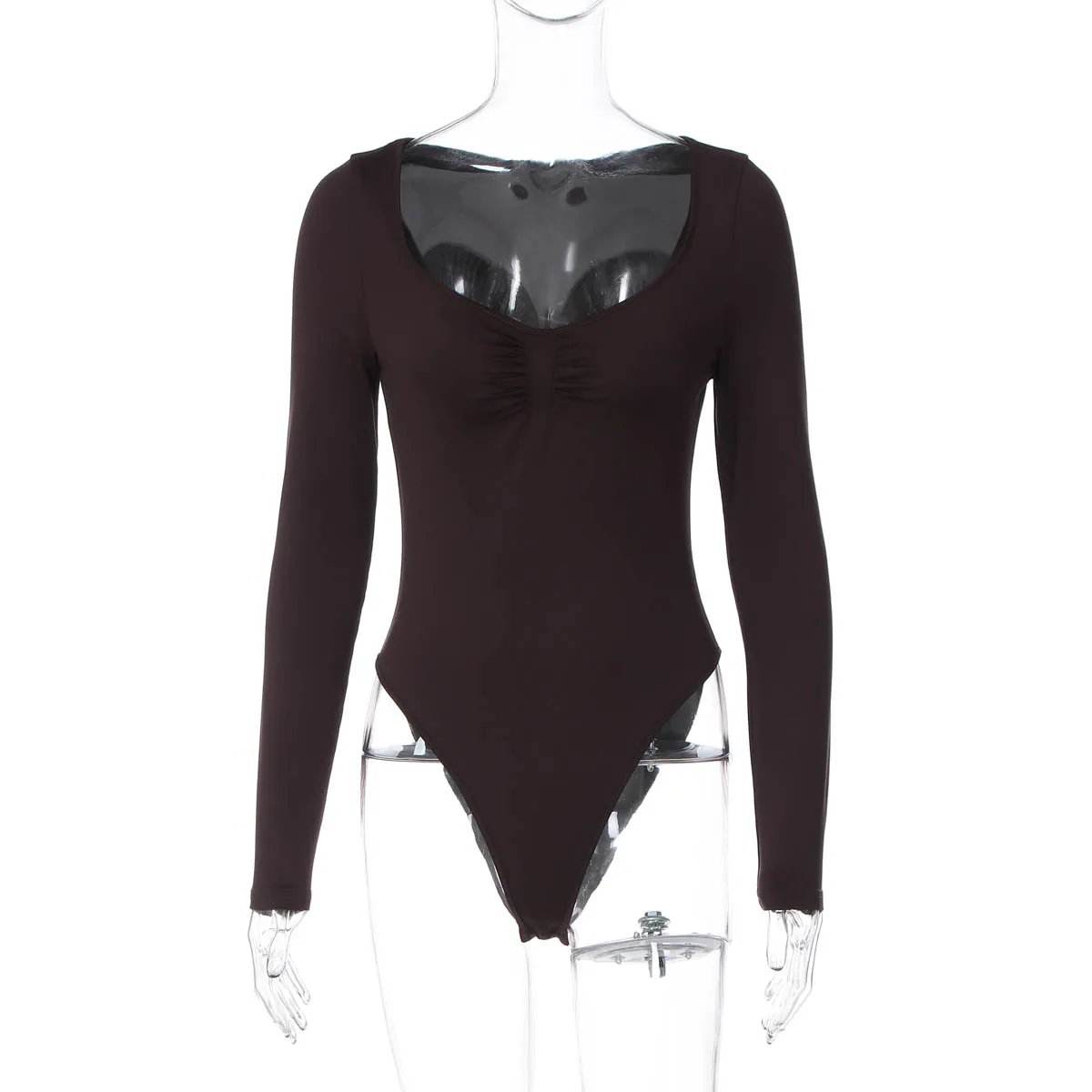 Dulzura O-Neck Long Sleeve Shirring Slim Bodysuit Women'S Solid Casual Versatile Romper Party Club Street Autumn Winter Clothes