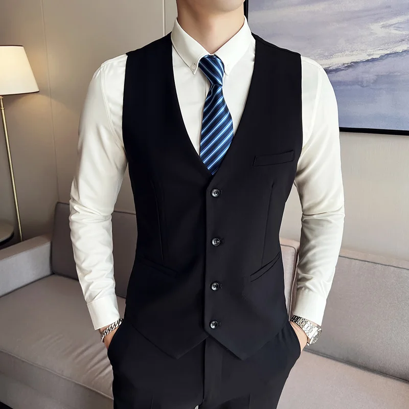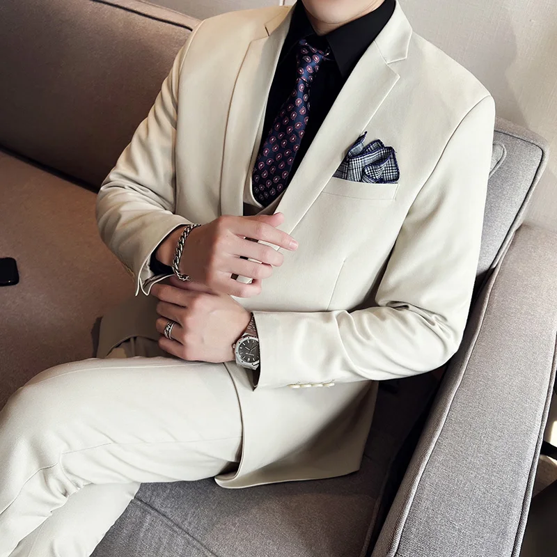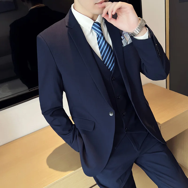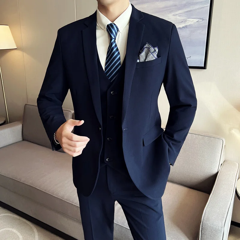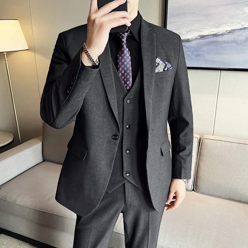 High quality fashion business (suit + vest + trousers) British style men's casual boutique handsome three-piece set