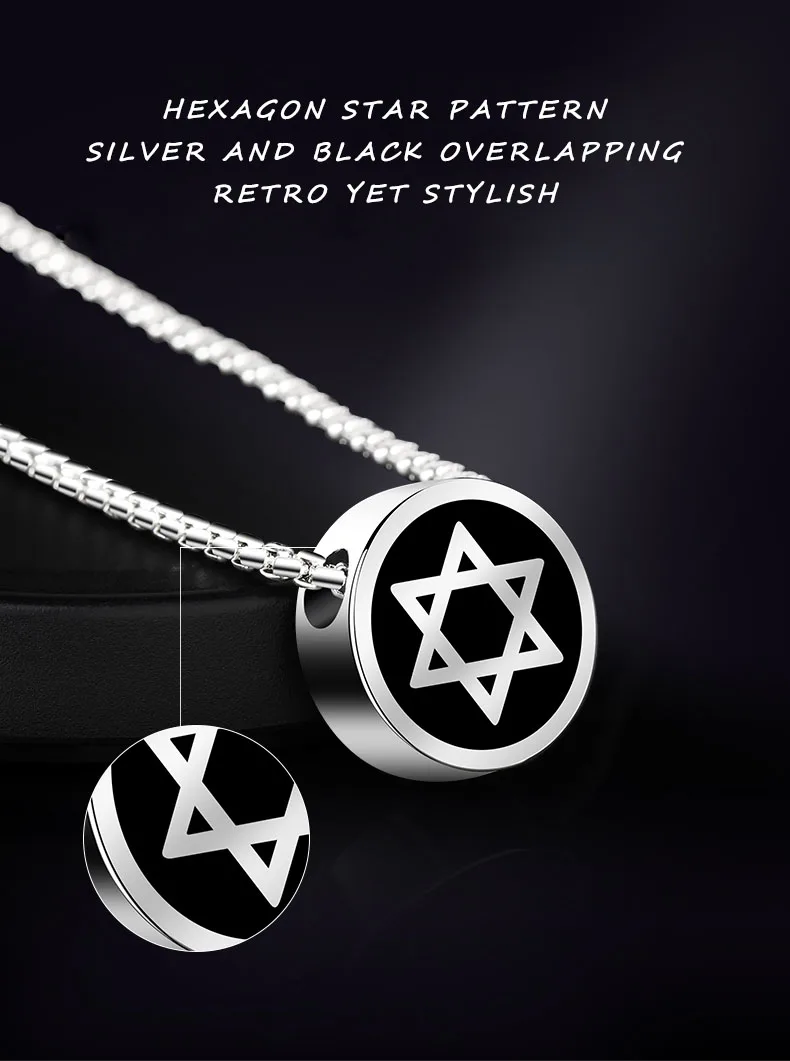 Necklaces for Men Women Hip-Hop Personality Clavicle Chain, Six-Point Star Tungsten Couple Pendant Engraving