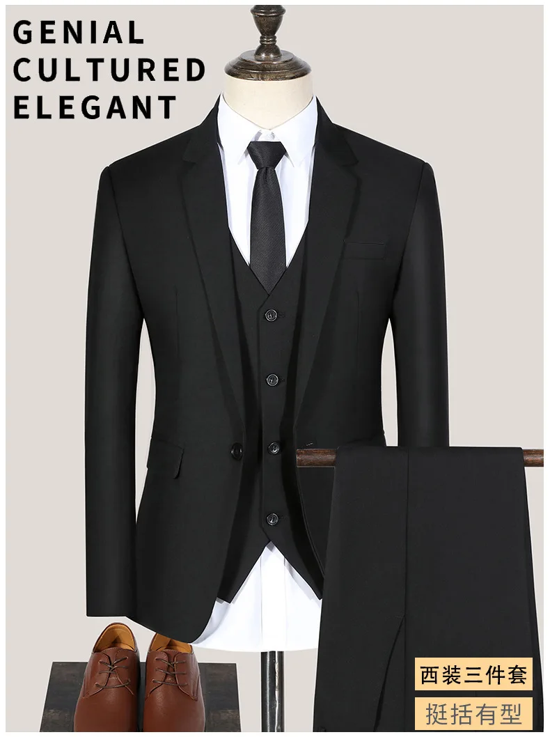 S-7XL Suit (Blazer+vest+pants) Business Dinner Gentleman Slim Gentleman Men British Style Dress Best Man Solid Color Group Suit