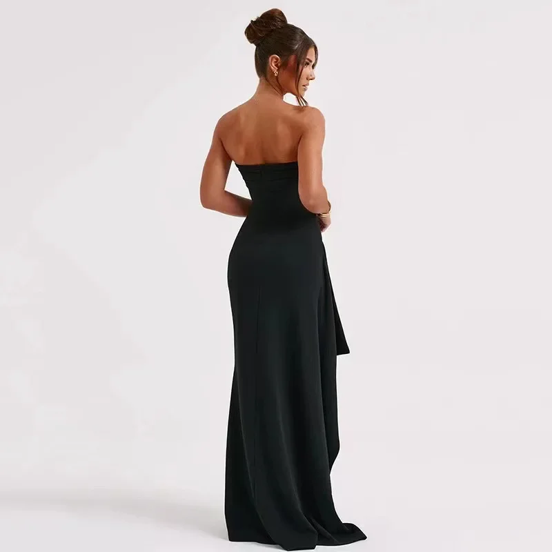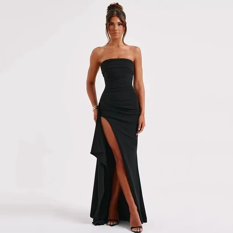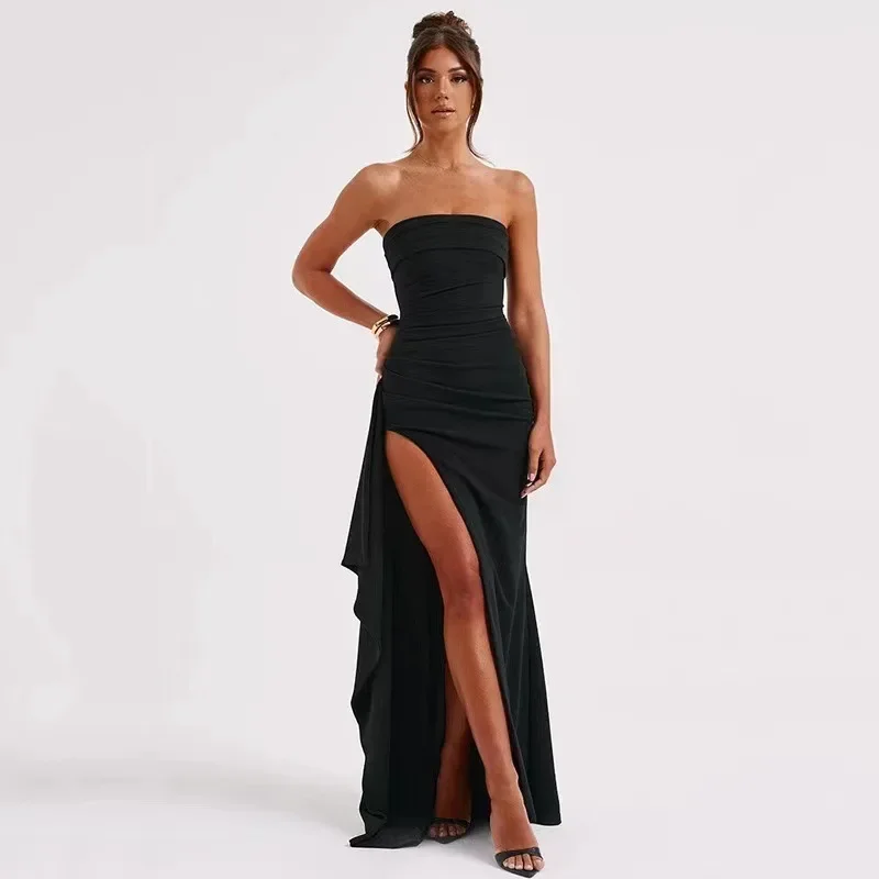 Strapless Backless High Split Maxi Dress For Women Black Off-shoulder Sleeveless Bodycon Club Party Long Dress Clothes